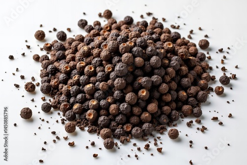 Photo inspiration: Overhead shot of coarsely ground black pepper sprinkled on a clear tabletop.