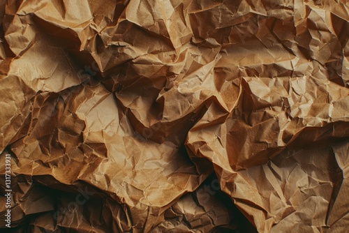 Photo of Crumpled sheet of toned brown paper. Background texture for backdrops or mapping