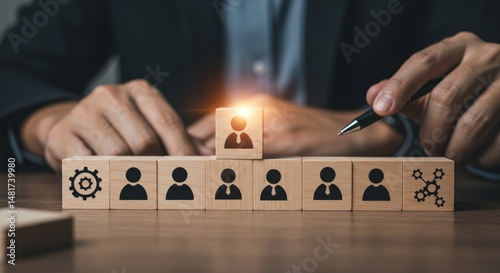 Photo of Hand Choosing Wooden Block with Person Icon