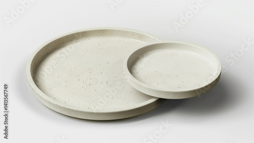Photorealistic image of a ceramic serving tray with stackable build on a white background