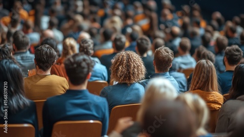 Photo-realistic image of a large crowd at a lecture