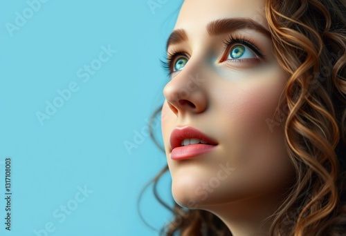 Photorealistic portrait of a female with long, curly brown hair and piercing green eyes