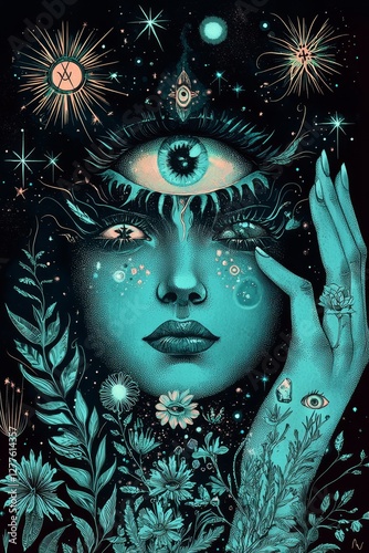 Photoshop creations that merge esoteric themes with botanical motifs.