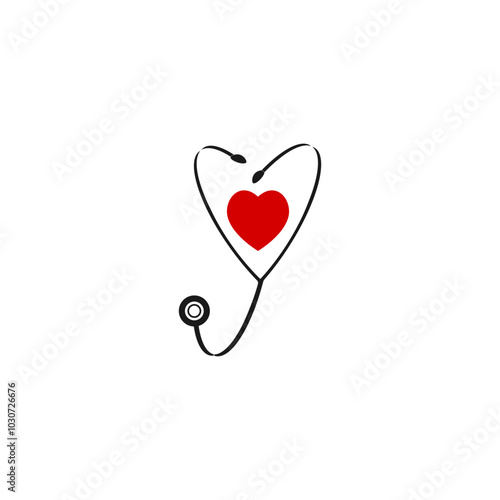 Pictogram of a stethoscope and a heart icon isolated on white background .