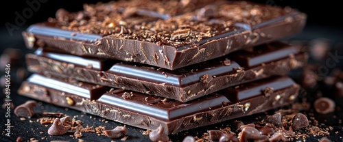Pieces Of Dark Chocolate On A Black Background, A Tempting Dessert Scene Ready To Be Savored