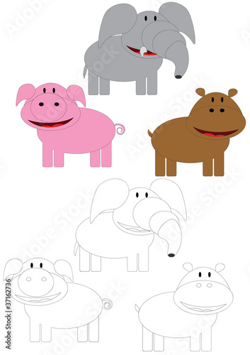 Pig,elephant and hippo to painting.