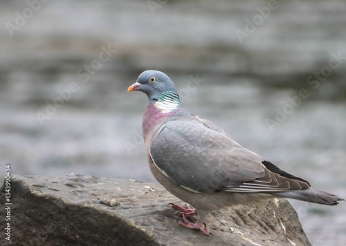 Pigeon on Rock with Blurred Water Background