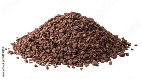 pile chopped milled chocolate on white background