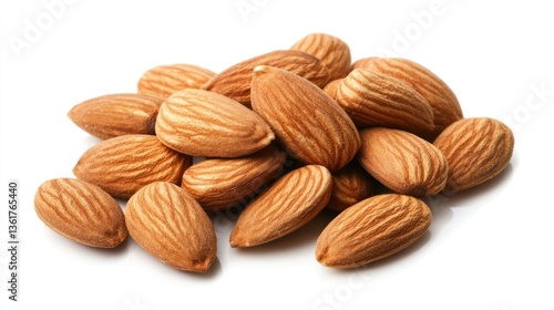 Pile of almonds on white background