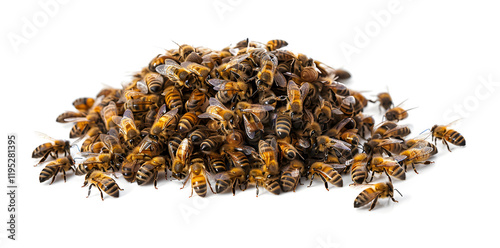 Pile of bees isolated on white background