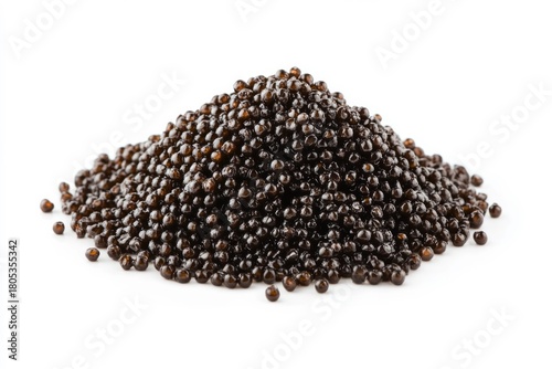 Pile of black caviar on white background. AI image