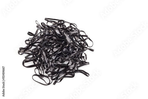 Pile of black rubber ring isolated on white background