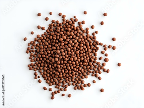 pile of brown grains, high-angle view, clean white background