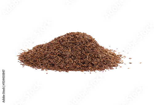 Pile of cumin seeds isolated on white background