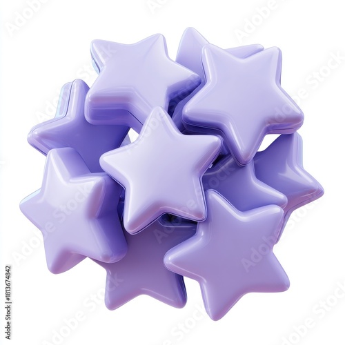 Pile of Light Purple Shiny Star Shapes on White Background Studio Shot