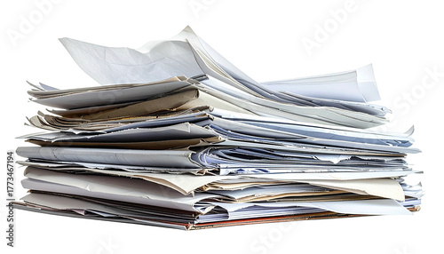 Piled stack of scattered, crumpled, white paper documents