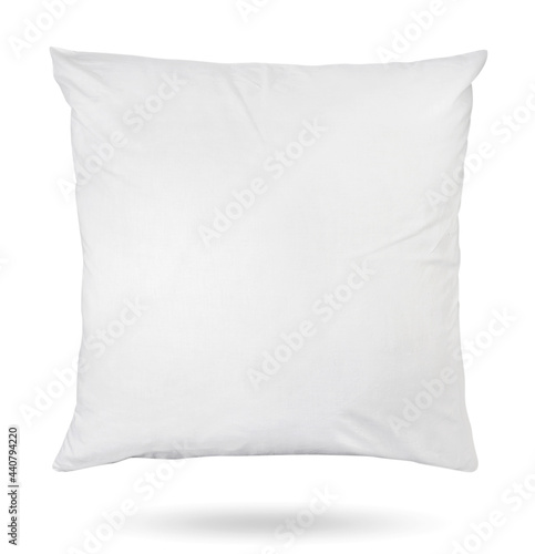 Pillow in a white pillowcase flies on a white background. Isolated