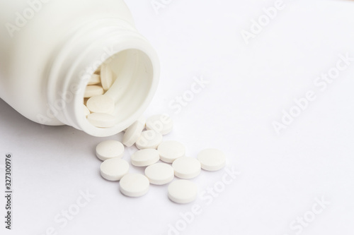 pills and bottle on white background
