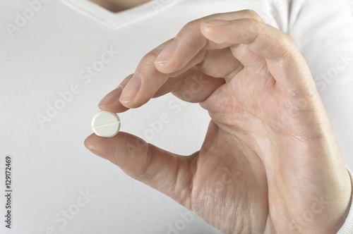 Pills in woman hand.