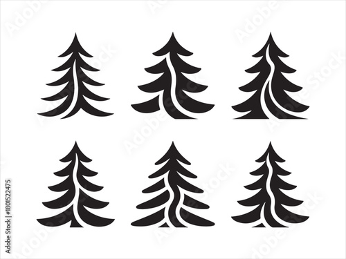 Pine Tree Silhouette Set, Christmas Tree Silhouette Set, Festive Pine Icons