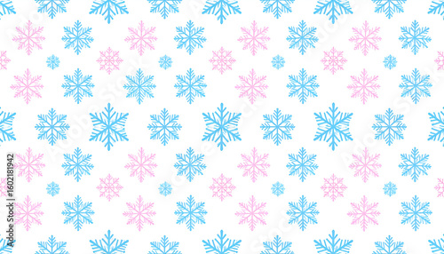 Pink Blue Snowflake Pattern.
