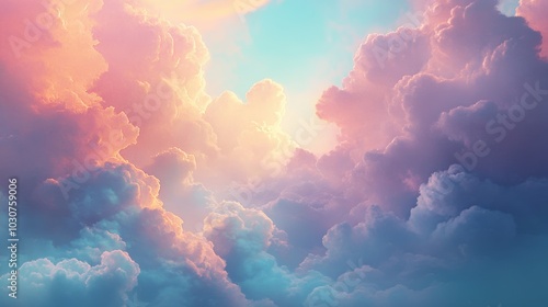 Pink and blue clouds in a sky.