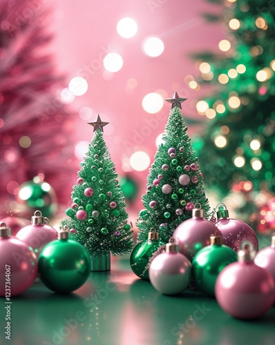 Pink and green soft glow abstract Christmas concept background