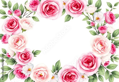 Pink and white rose watercolor wreath frame, bouquet floral design , vector, pink