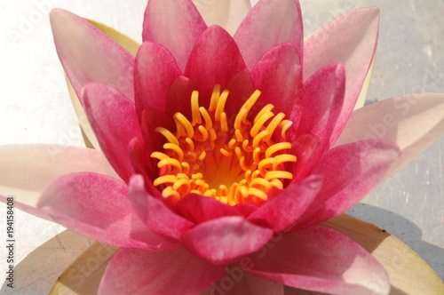 pink and yellow Nymphaea lake plant on a white background