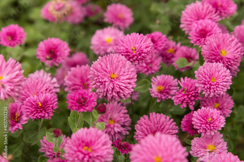 Pink autumn chrysanthemum flowers in the garden, floral background