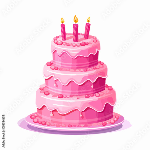 Pink Birthday Cake on White Background Illustration