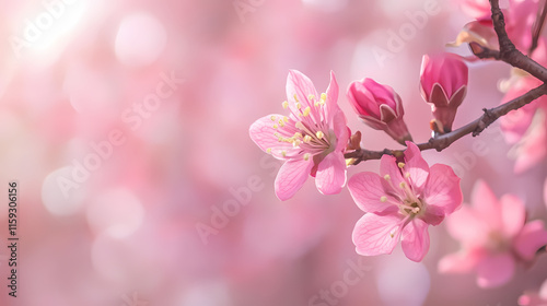 Pink Blossom Branch in Springtime Sunlight