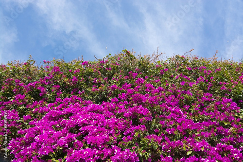 Pink bougainvillea flowers and sky