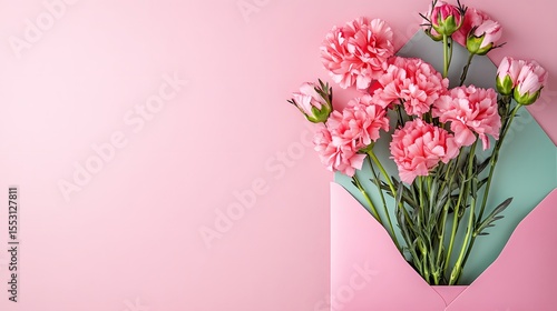 Pink Carnations in a Pastel Envelope Romantic Floral Background