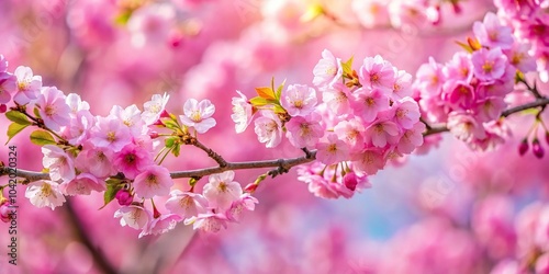 Pink cherry blossoms in full bloom on a branch Medium Shot