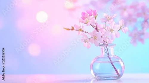 Pink Cherry Blossoms In Vase With Dreamy Background