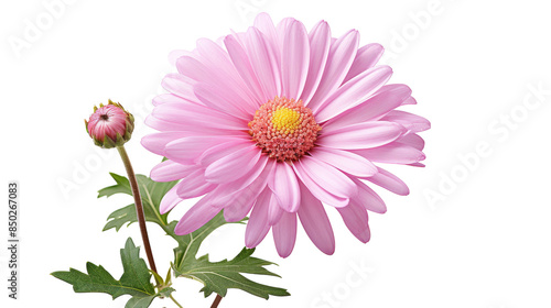 Pink Chrysanthemum Flower With Bud Isolated on White Background