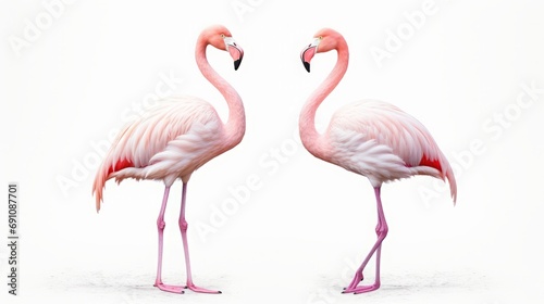 Pink flamingos look at each other lovingly.