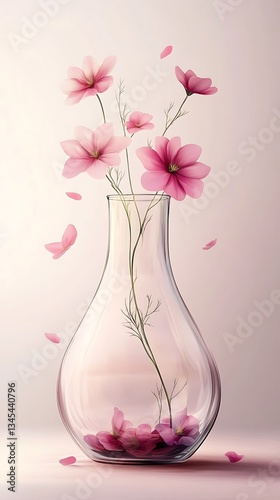 Pink Flowers in a Glass Vase Soft Light Feminine Elegance Minimalist Design on a Pale Surface