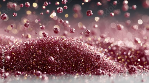 Pink glitter dust and sparkle particles falling on transparent background