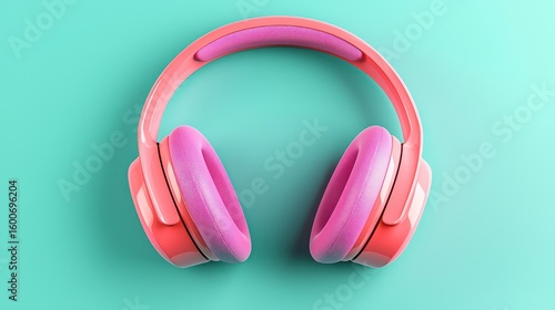 Pink headphones on mint background