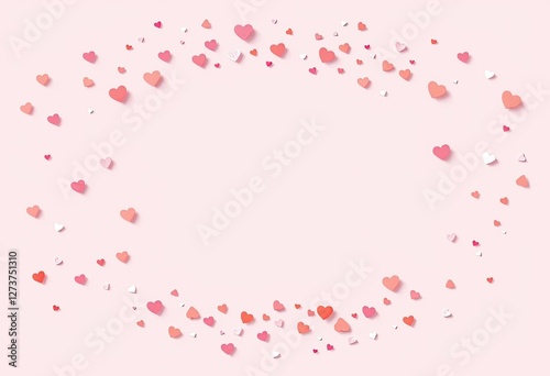 Pink hearts scattered on a light pink background