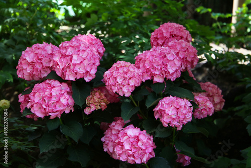 Pink hydrangeas blooming in the garden.