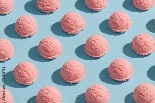 Pink Ice Cream Scoops Pattern on Teal Background with Shadows
