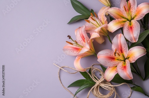 Pink Lilies with Twine on Purple Background