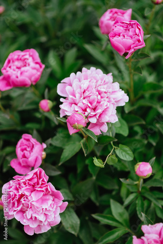 Pink peonies in the garden. Blooming pink peony. Closeup of beautiful pink Peonie flower.