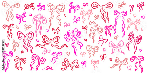 Pink ribbon bows with shiny marker texture for birthday gift wrapping, party decor, and festive packaging