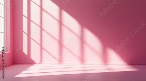 Pink Room Interior with Natural Light from Window Casting Shadows on Wall and Floor