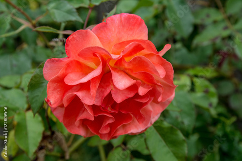 Pink rose in the garden closeup