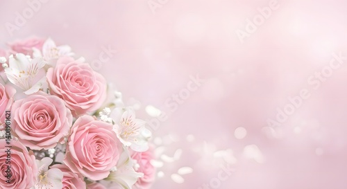 Pink Roses and White Flowers in Soft Focus for Romantic Occasions